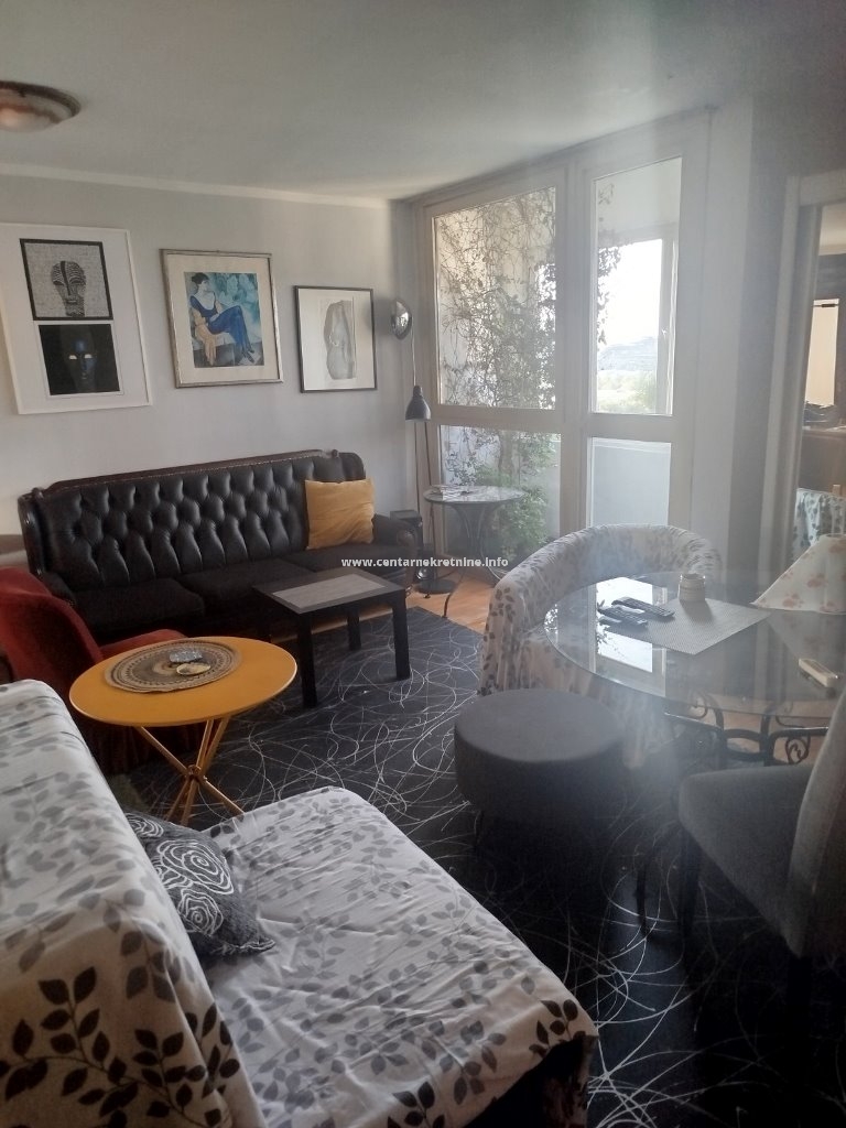 Izdaje se veoma prostran, kompletno namješten dvosoban stan na odličnoj lokaciji, u blizini Osnovne škole "Štampar Makarije" u Bloku V.