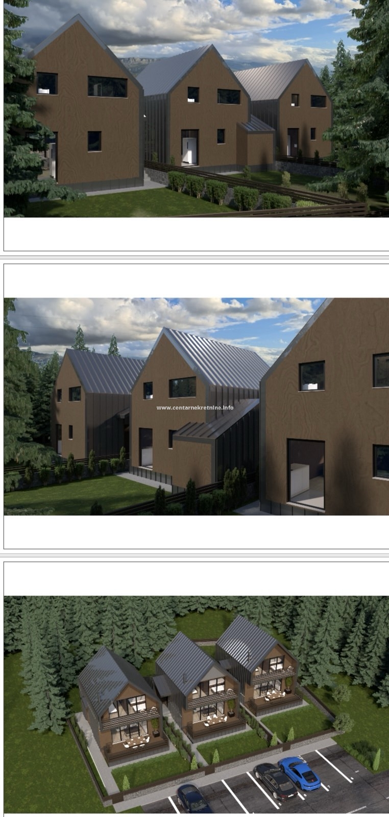 Ucrtane su 3 kuće površine po 84m2, spratnosti P+1.