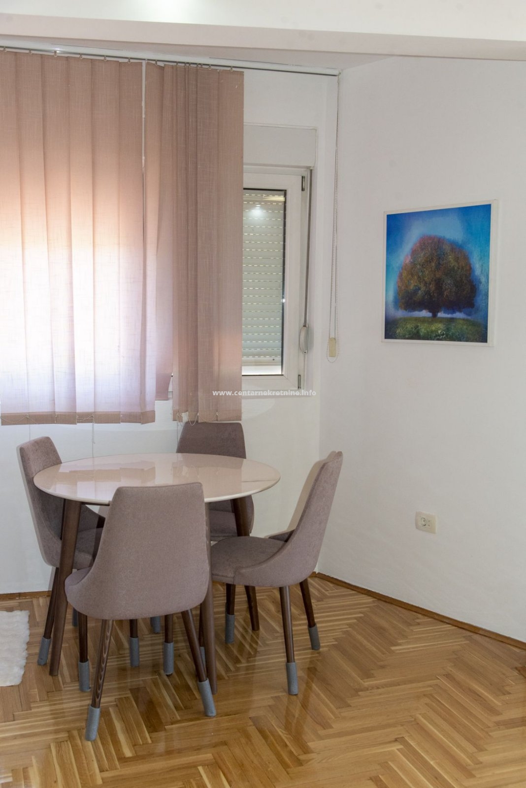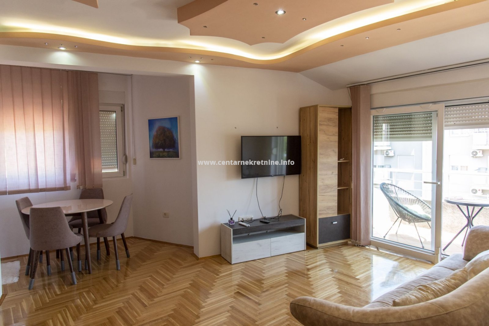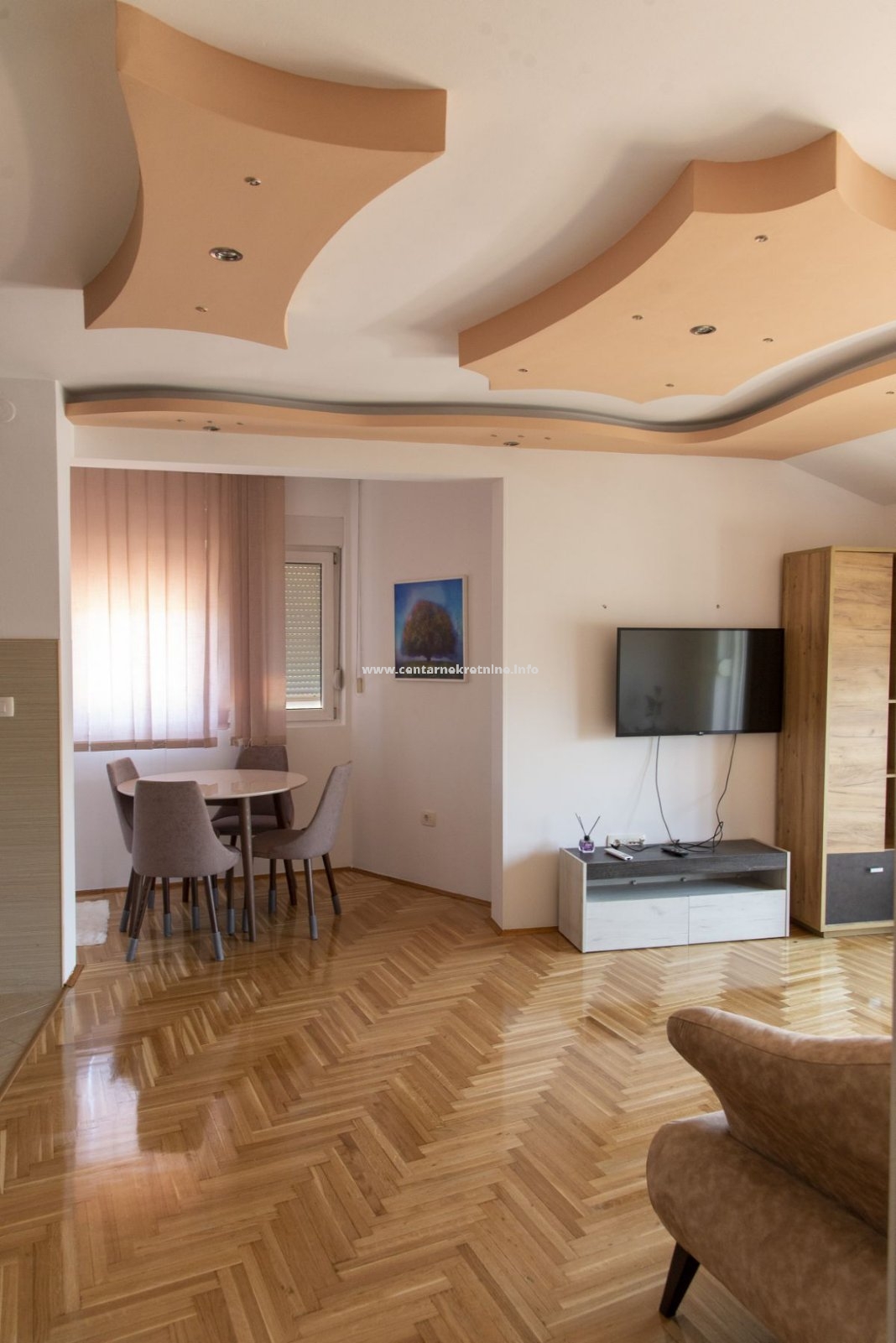 Stan je kompletno, veoma lijepo namješten, osunčan i osvijetljen.