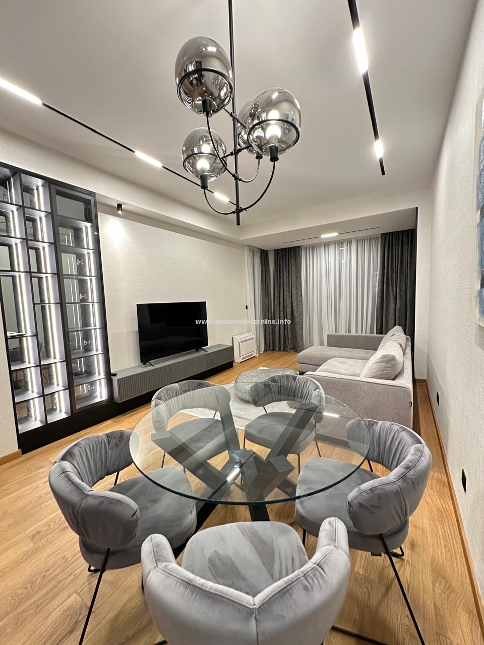 Stan je kompletno opremljen lijepim, modernim namještajem i tehnikom.