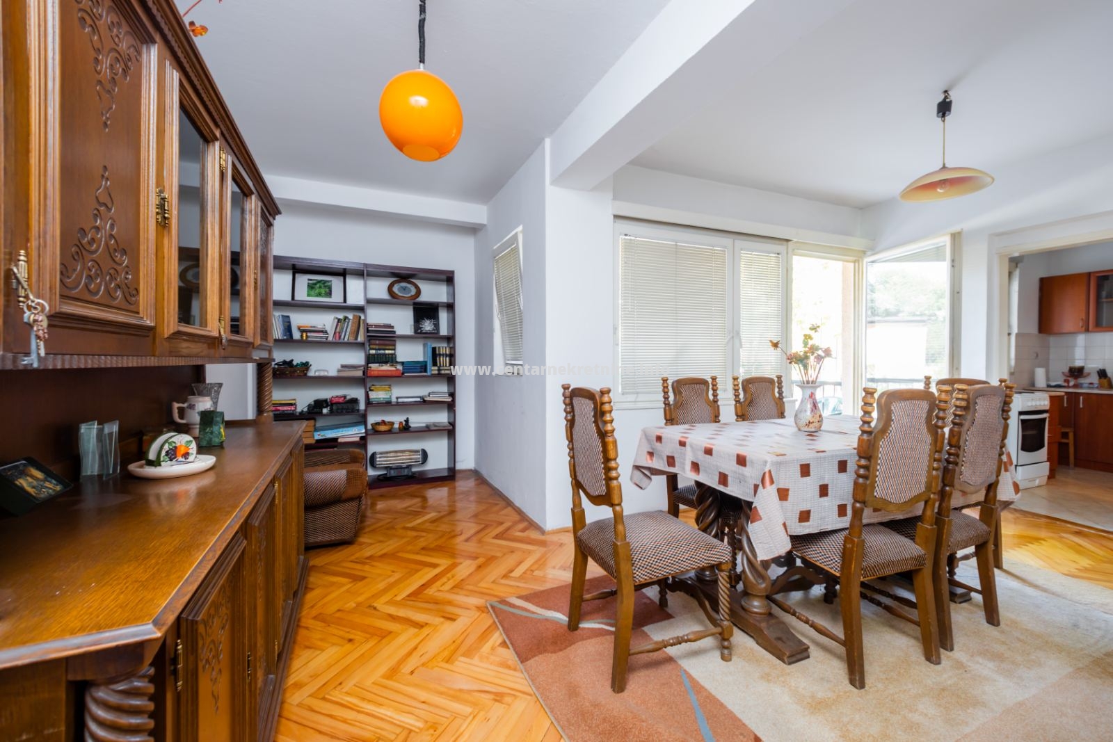 Struktura: hodnik, dnevna soba, trpezarija, kuhinja, ostava, 2 spavaće sobe, kupatilo, toalet, terasa.