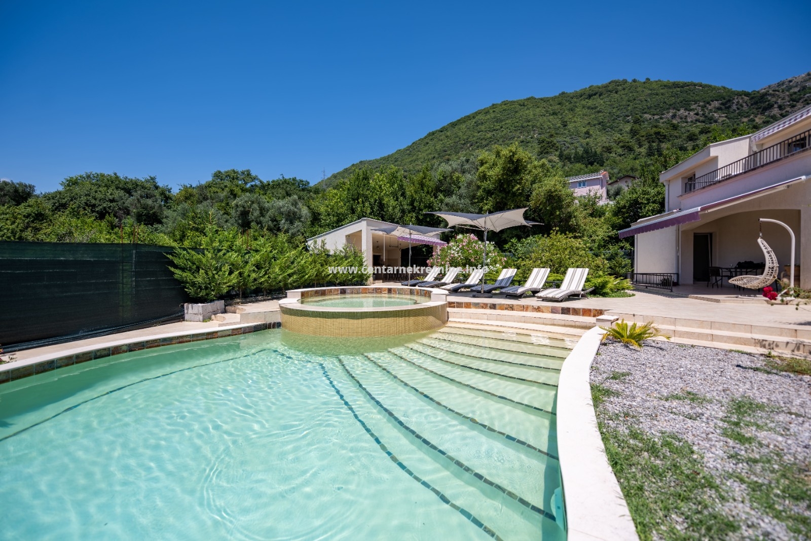 Vila je površine 460m2, na placu od 859m2, sa bazenom od 72m2.