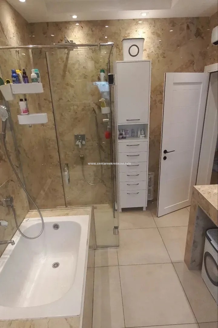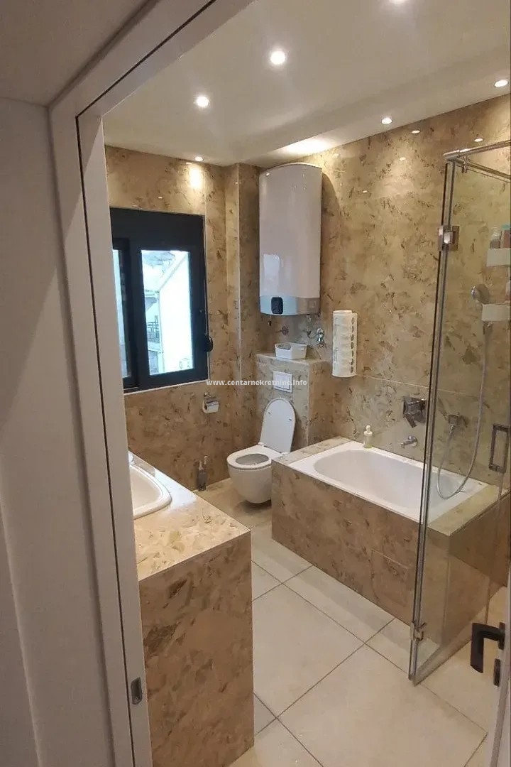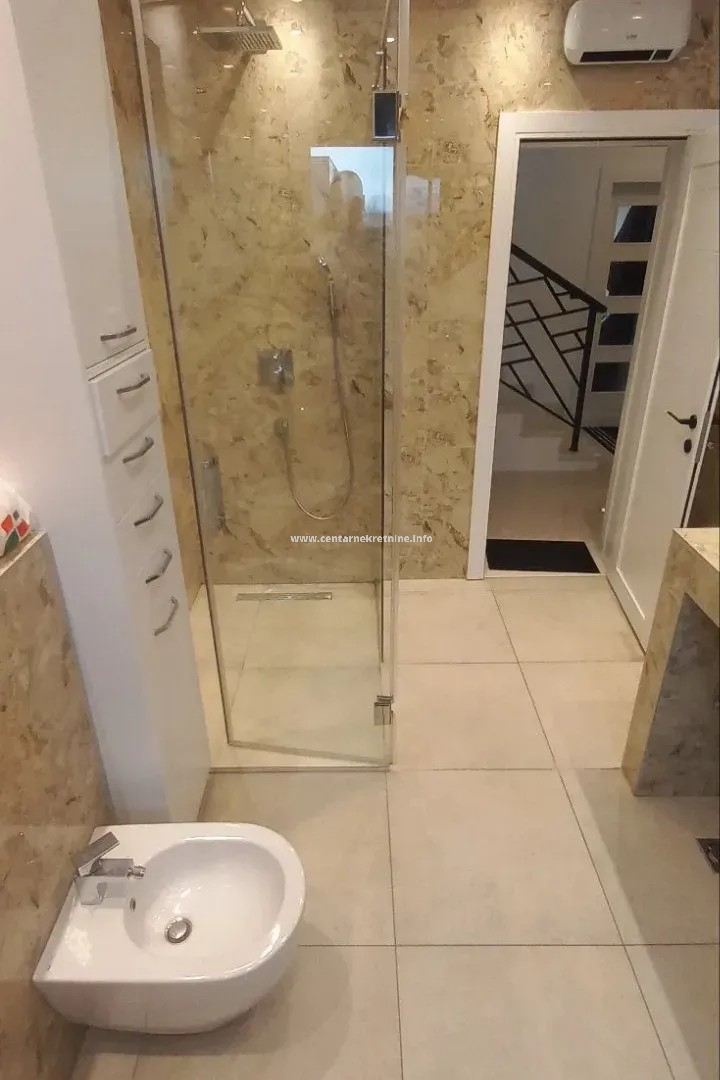 Dupleks je površine 180m2, nalazi se na prvom i drugom spratu. Posjeduje 5 parking mjesta.