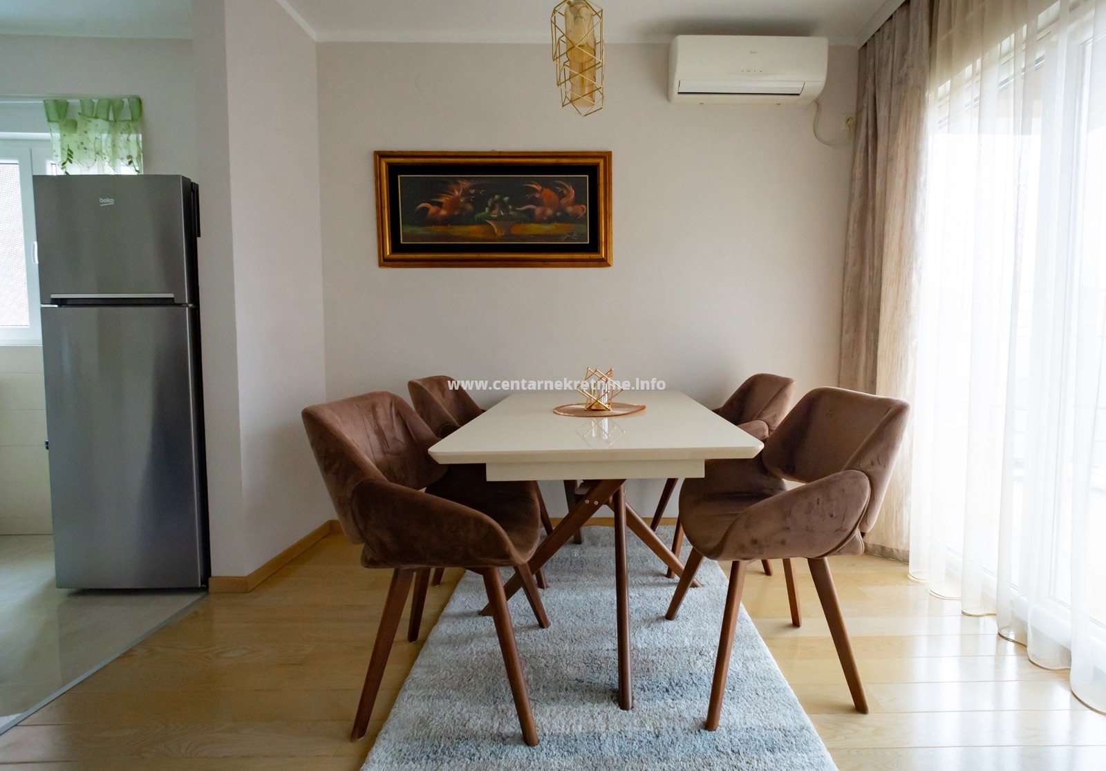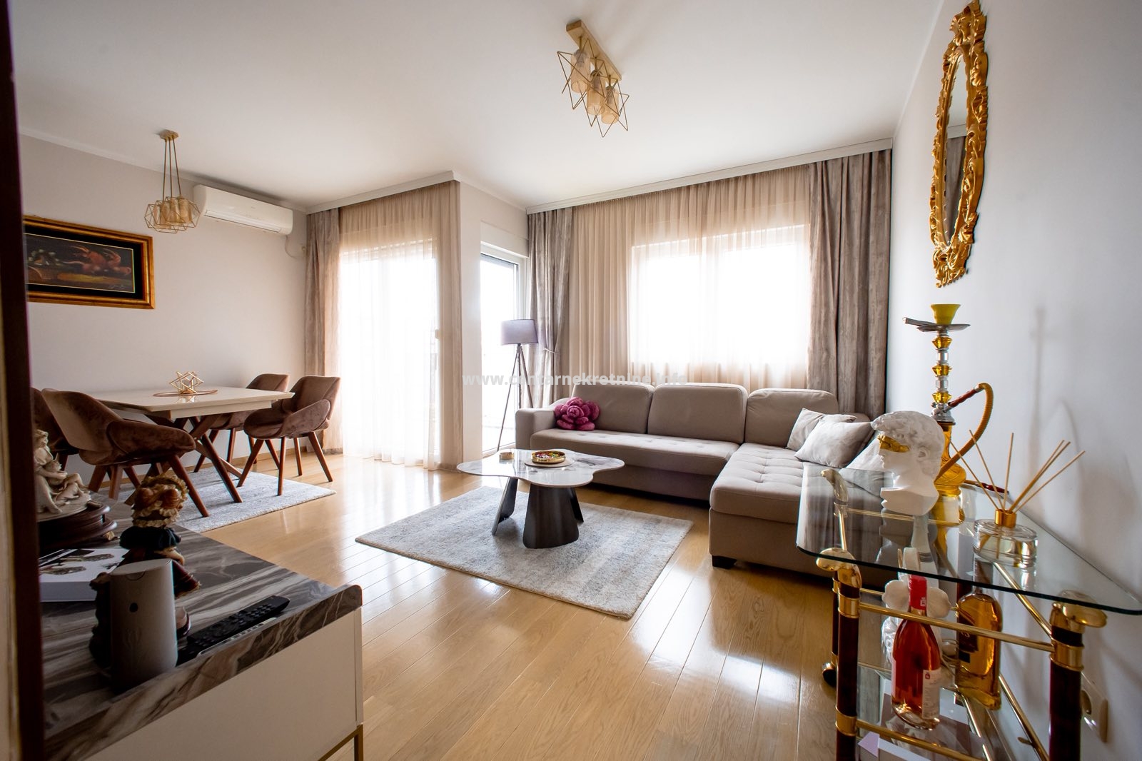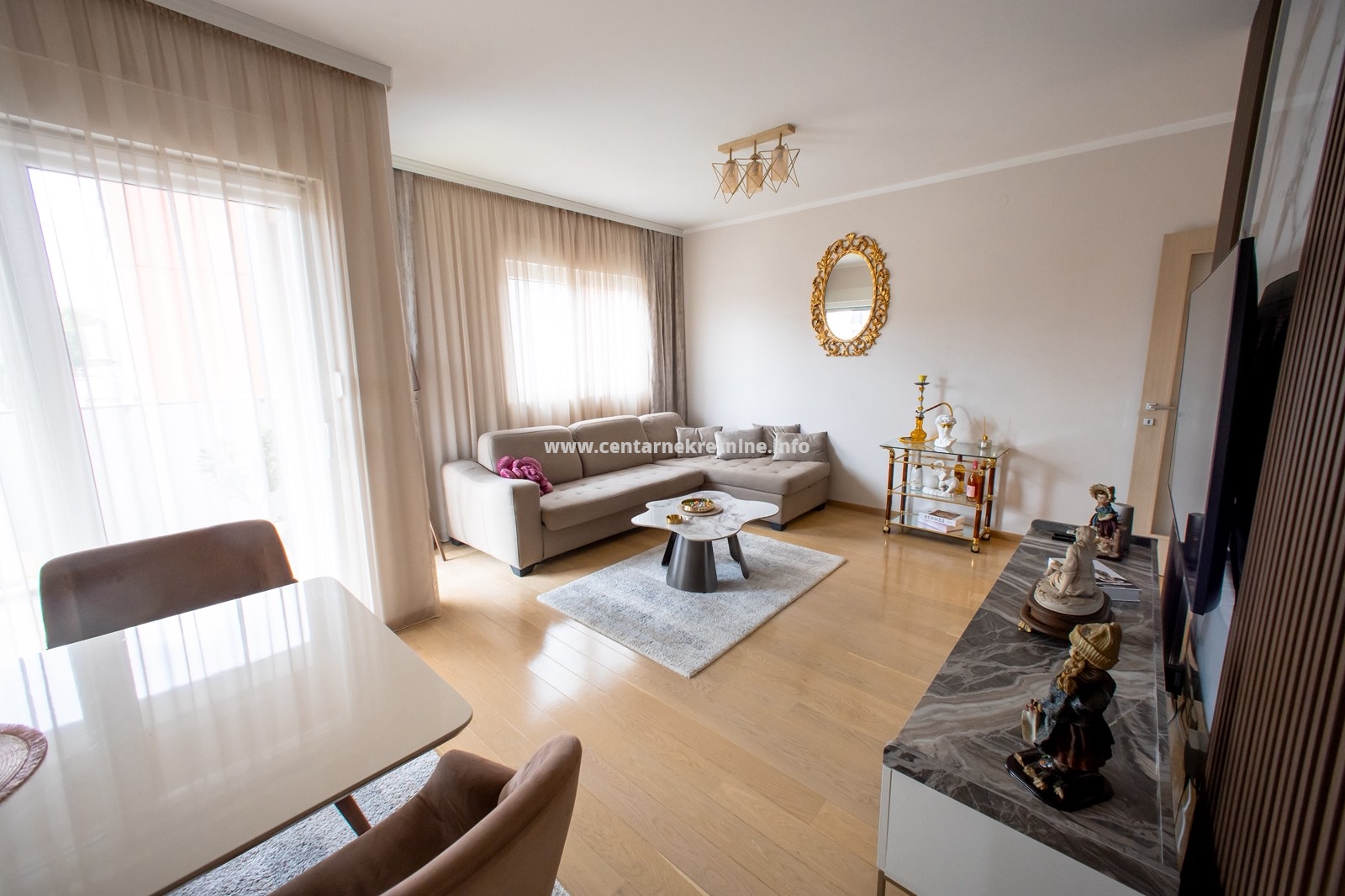 Stan je kompletno, veoma lijepo namješten, osvijetljen i prozračan.