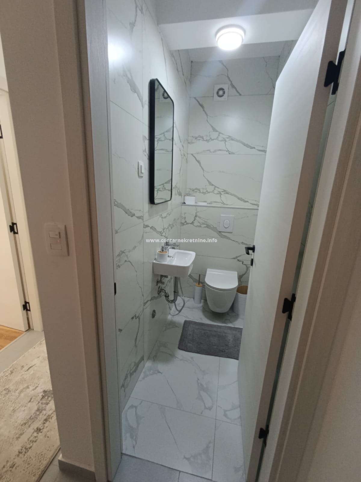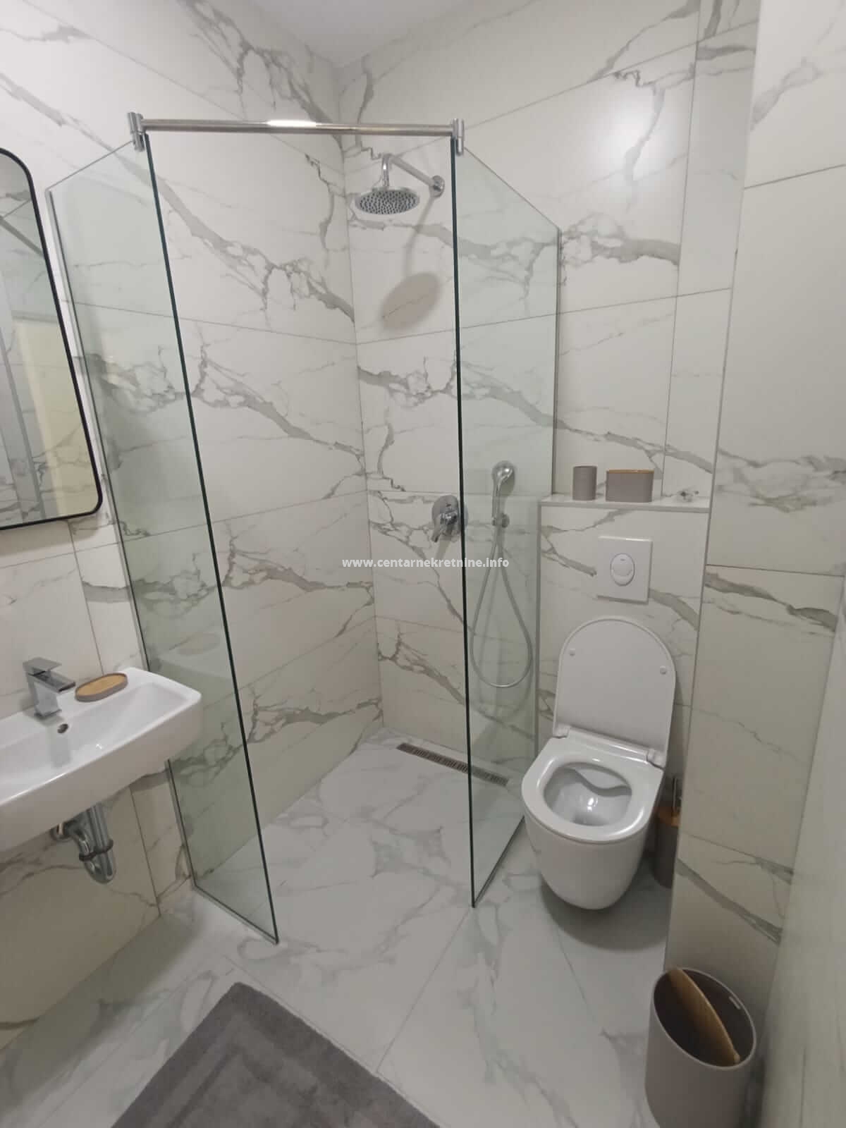 Struktura: hodnik, prostran dnevni boravak, kuhinja, 2 spavaće sobe, kupatilo, toalet, velika terasa.